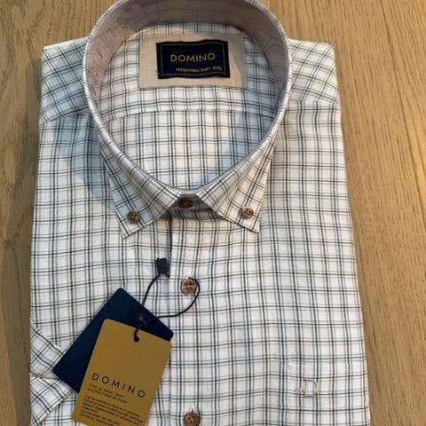 Hele og pene ,lite brukt blå bomulls skjorte ,merke vare. Hvite er antydning gulnet på armer og nederst på skjorta bak men syns knapt . pris er for begge totalt