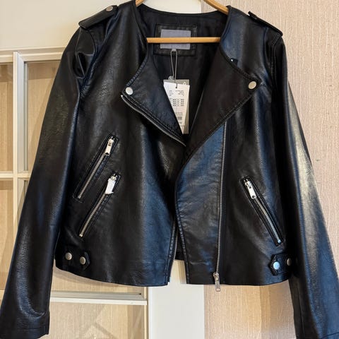 Selger ubrukt imitert skinnjakke fra B. Young.