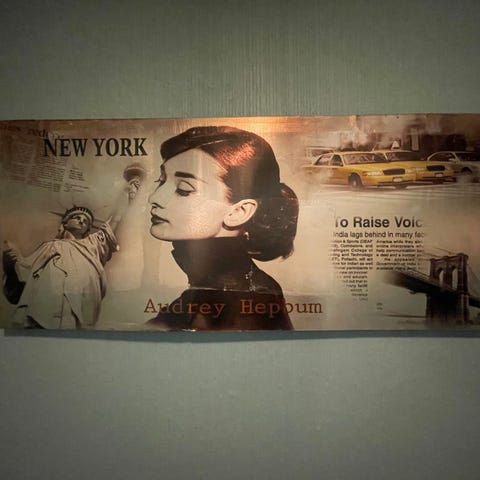 Selger to stk flotte blikk skilt med Audrey Hepburn H 30xB 20cm. Kr 100,- pr stk Kan hentes i Moss eller sendes. Kjøper står for frakt. Se gjerne mine andre annonser ☺️