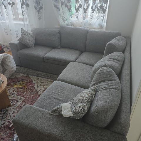Må hentes i 6. etg, mulig sofae går inn i heisen hvis man demonterer den i to.