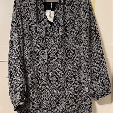 Nydelig, lang kjole fra Line of Oslo i str XL med lommer og trekvart ermer. Romslig størrelse.