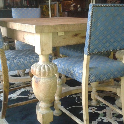 Retro spisebord og stoler i mørkt tre