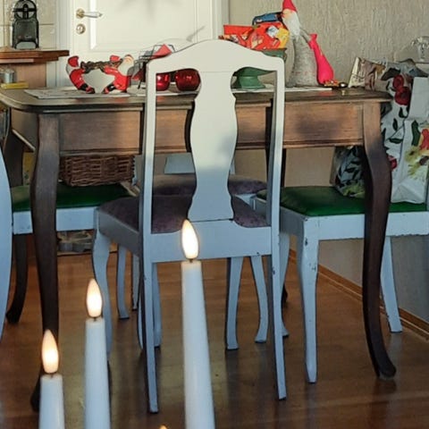 En retro spisegruppe selges sammen med åtte tilhørende stoler, anvist på egne bilder. Bordet har en lengde på 211cm fult utslått. Usikker tresort, muligens mahogani. Bordet er i god stand, men har noe slitasje langs bordbeina på finishen. Kom gjerne med bud.