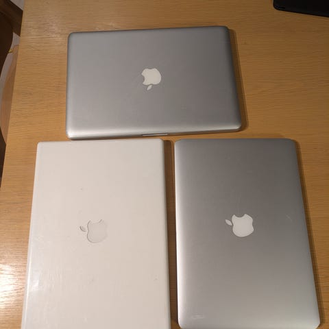 Har mange gamle MacBook pro og noen tilsvarende macer. 12++ stykker.