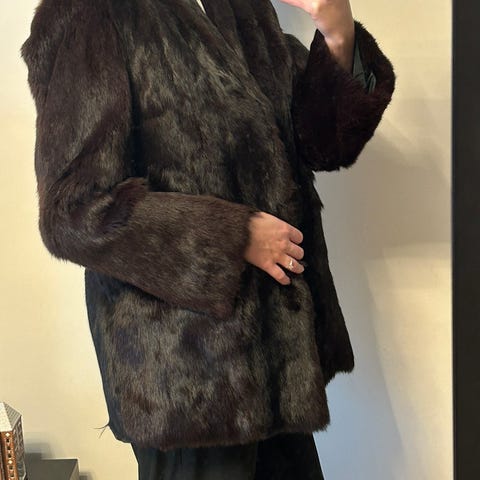 Selger en vintage lang pelsjakke / kort pelskåpe med store lommer foran. God og varm. Nutria pels.