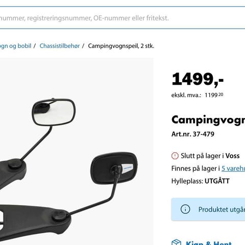 Pent brukte Milenco Campingvognspeil/ekstraspeil selges.