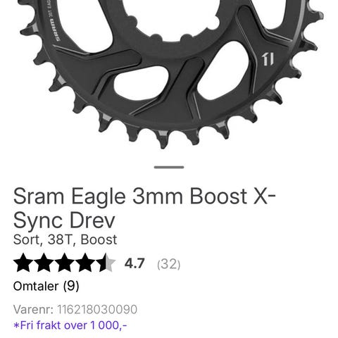 Har 3 Sram Eagle drev 32T til Sram 3 punkts DM innfesting