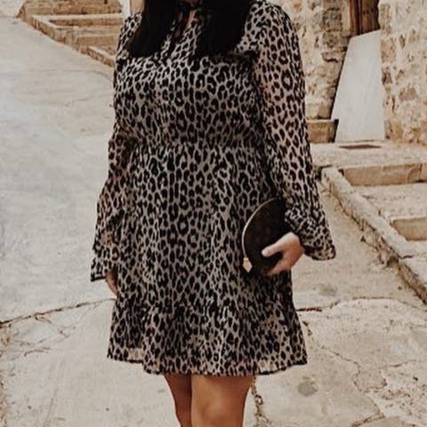Lekker florlett sommerkjole str M/L. Brun, sort mønstrete. Må ha underkjole under😊Faller fint. Kan pyntes opp med pensko og ned med feks Birkenstock 🌸