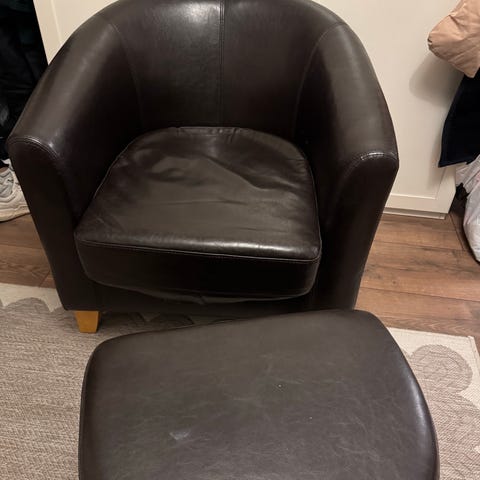 Disse 4 stoler er godt brukt nogen mere slite i kunst leder end andre. De er stødig og myke og sitte i har krom under stell.