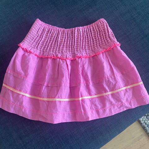 Skjørt med stikklommer og glidelås. Knapp i siden. Mulighet for å stramme livet. Ingen skader.