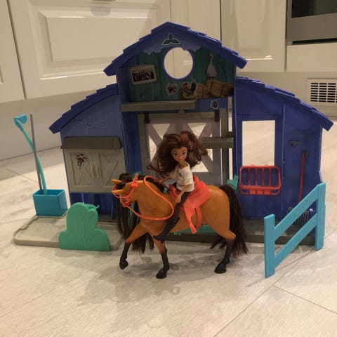 Jeg selger min pent brukte spirit-stall med to hester og alt originalt utstyr. Basert på filmen spirit. En super gave til en liten hesteelsker. Ny pris over 900.