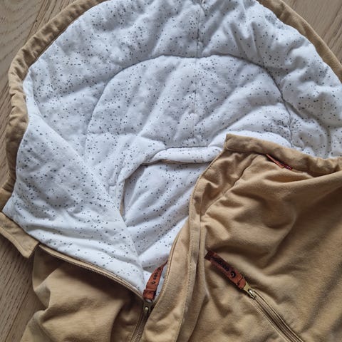 Vognpose fra Easygrow med avtakbar fuskepels og forlenger. Dunposen inni kan tas ut, slik at vognposen fint kan brukes høst, vinter og vår. Pent brukt.