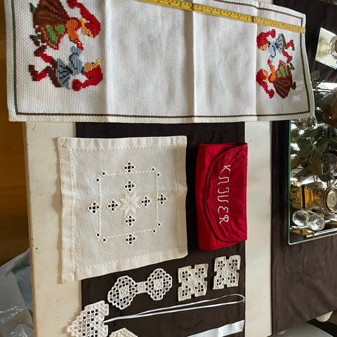 Hardangersøm løper og 2 brikker i delikate farger (helt nye og ubrukte!)