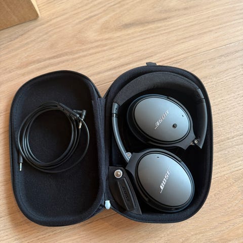 Selger et par Bose QC25 – klassiske hodetelefoner med suveren aktiv støydemping som gir deg en fantastisk lydopplevelse, enten du er på reise, jobber, eller bare vil nyte musikken i fred.