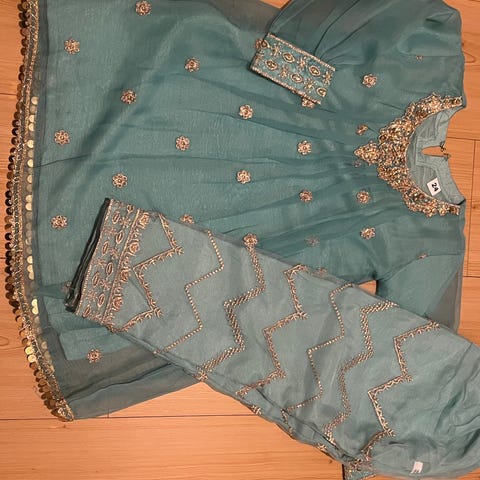 Brukt et par ganger. Sjalen eller dupatta er litt slitt.