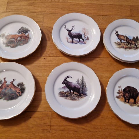Nydelig servise med dyremotiv.