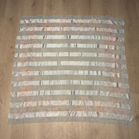 Veldig pen hvit / kremhvit eldre topp. Perler og dekorasjoner. Tror det er et syntetisk stoff med stretch. Ingen lapper. Må vaskes skånsomt. Under arm til under arm er 55cm, hele lengden 59cm.
