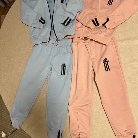 Er ikke falmet, er fin i fargen. Lyset som gjør at den ser falmet ut. Str 110-116. Kjempe kul joggedress