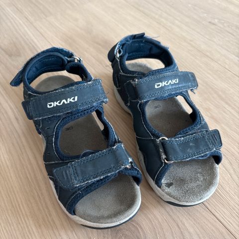 Okaki sandaler selges. Brukt, men i god stand. Str 27. Mørkeblå.