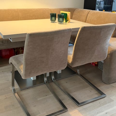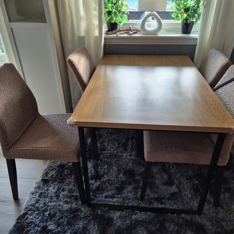 Selger en Medley spisebenk i velour med heltre hvitoljet eikebein, samt 3 matchende spisestoler, alt kjøpt hos Pegus Møbler i 2020. Møblene er pent brukt og i meget god stand, og har stått i røyk- og dyrefritt hjem. Velourstoffet gjør det veldig slitesterkt og holdbart. Veldig god å sitte i.
