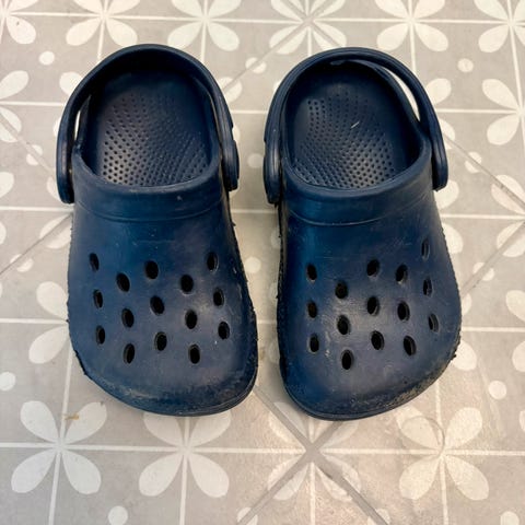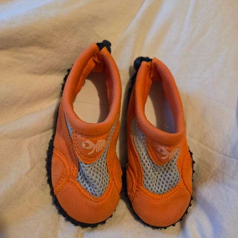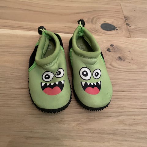 Blå strandsko. Stramming ved hælen. Sitter godt på.