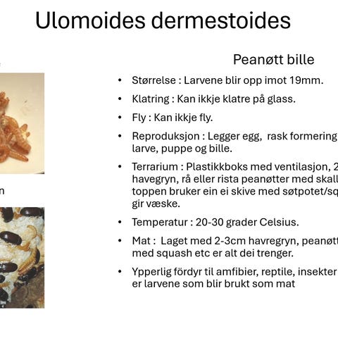 Enkel, robust og proteinrik kakerlakk ifra sør og mellom-Amerika som egner seg som godt feeder til reptiler/predatorbiller etc. Lett å holde, formerer seg rask og kan ikkje klatre på glatte overflater.