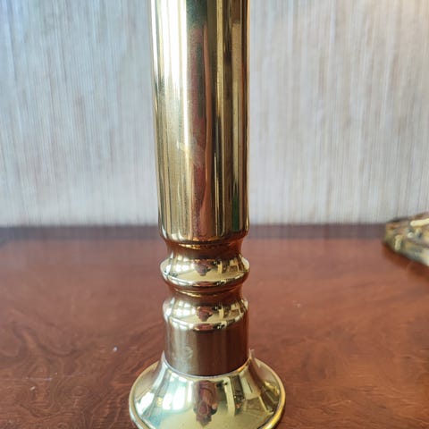 Den ene er messing litt tung.Den andre er lett gullfarget .Jeg kan sende med Post Nord porto blir 69kr 😊