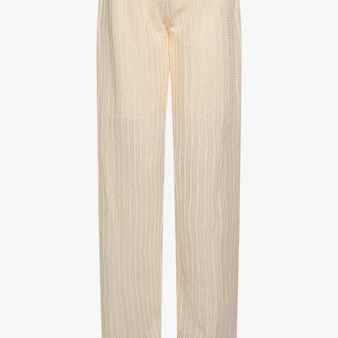 Nye bukser i 100 % solid bomull, nesten som lin. Normal midje. Lommer foran og bak. Glidelås og knapp i gylfen. Buksen sitter løst rundt lårene , svinger litt utover nederst. En flott bukse som kan brukes til hverdag og fest . Nypris kr 1099.