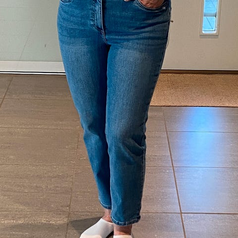 Buksa har en flekk på ene låret som sees på bildet. Usikker på om den går av i vask