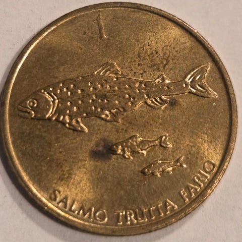 Se bilder. Verdens eneste mynt pålydende 3 euro.