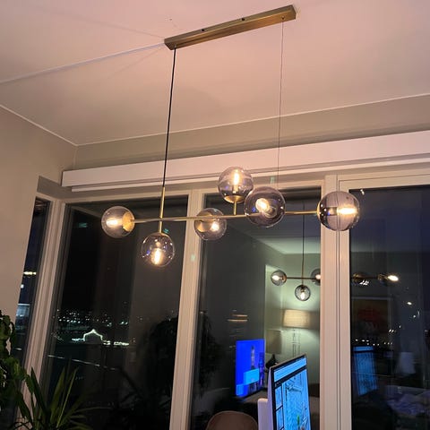 Selger vår nye vegglampe da den dessverre ikke passet på veggen der vi skulle ha den. Selges for 1999,- inkl pærer.
