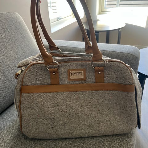 Sort veske/bag til hund eller katt. Kjøpt på Musti.