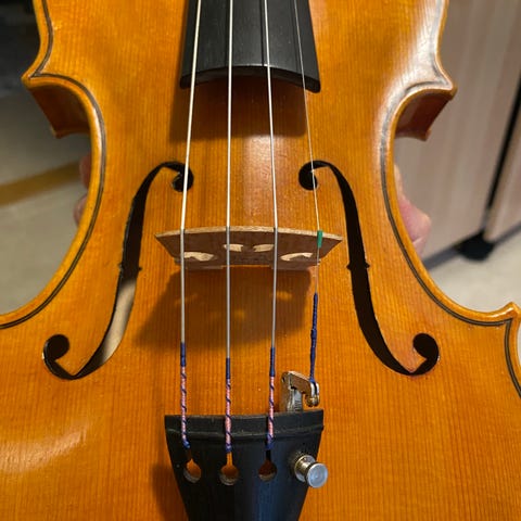Selger pent brukt fiolin for de minste barna. NB, fargen er lilla.