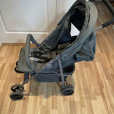 Brukt til et barn. Kun på reiser. Alt stoff er tatt av og vasket. Det har kommet litt rust på noen av knappene. Selges derfor rimelig. Vognen ser ellers fin ut og alt virker som det skal. Nypris var 4999 kr.