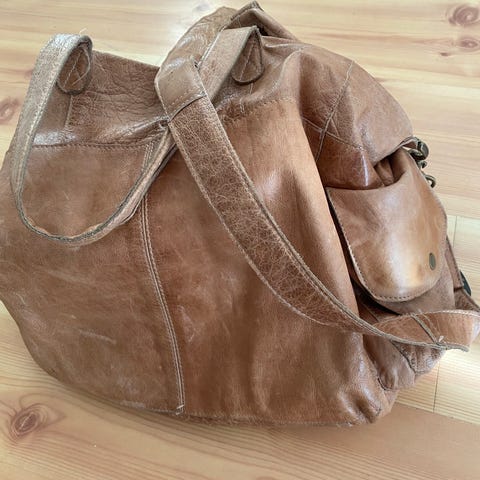 Kul, pent brukt skulderveske fra anoraks. Vesken er 46 cm bred og 34 cm høy.