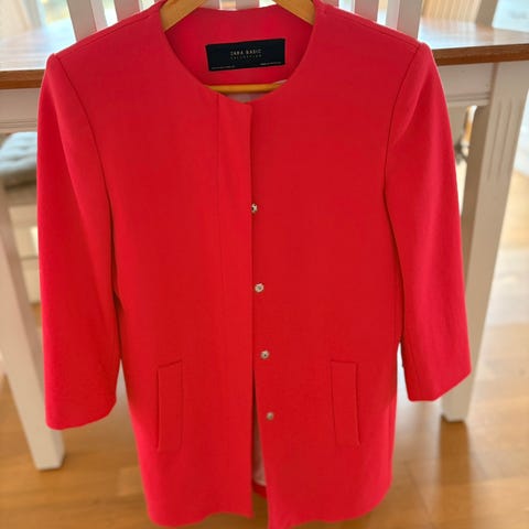 Zara Basic kåpe rosa i størrelse S. Denne rosa kåpen er har et klassisk design som passer til ulike anledninger. Kåpen har en behagelig passform og er ideell for både hverdagsbruk og mer formelle situasjoner. Kun brukt få ganger. Selges da den er litt liten til meg.