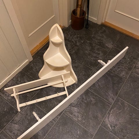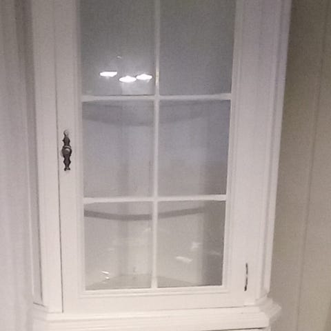 Pen, hvitmalt hylle, som vist på bilder.