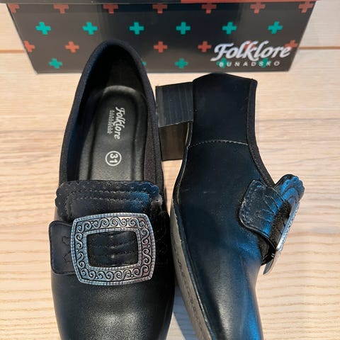 Flotte bunadsko til festdrakten. Overdel i syntetisk skinn. Skinn innersåle. God passform.