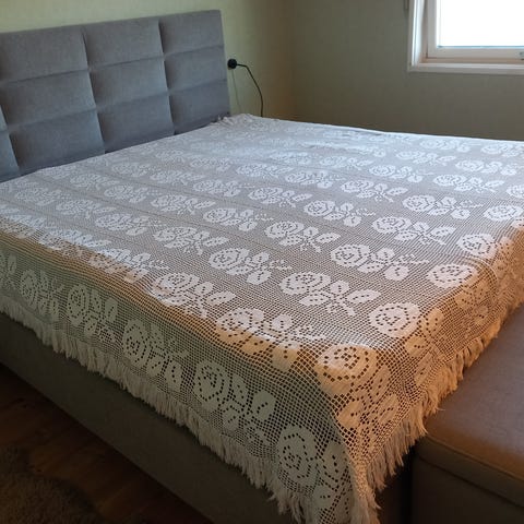 Hånd hekla sengeteppe vintage