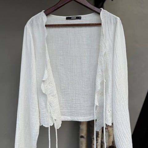 Hvit Cardigan fra H&M (str. 170) selges.