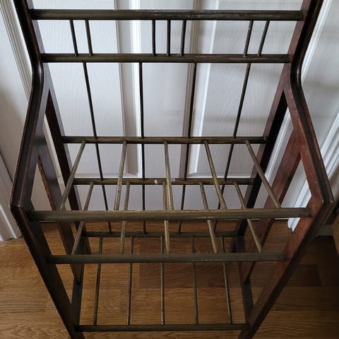 Flott eldre vegghengt oppbevaringssystem/skuffer/metall-til verktøy ol- eller nips-flott som pynt-ulike str på skuffene,to litt knekte,men alle fungerer.Merket Racco -dansk design-denne er praktisk og flott-bud