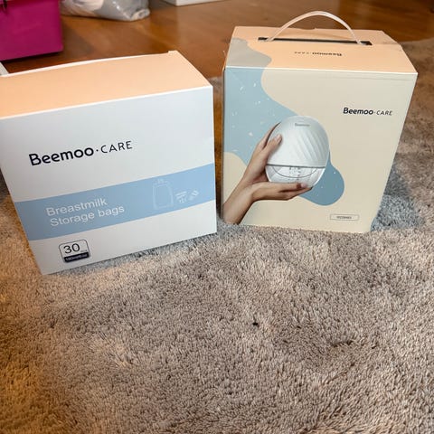 Veldig lite brukt brystpumpe fra Beemoo. Brukt max 3 ganger. Vasket og kokt etter hvert bruk