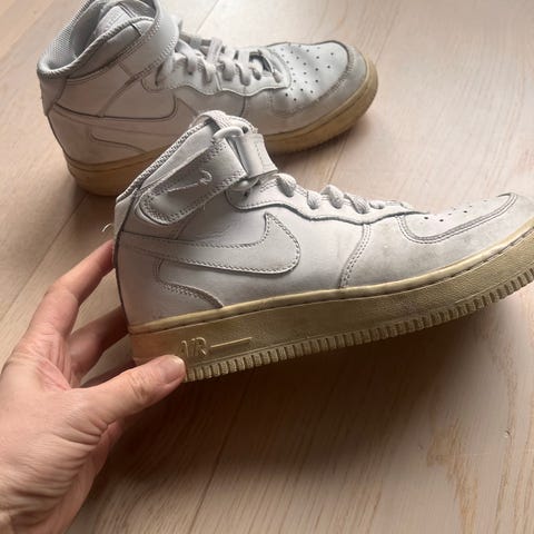 Nike sneakers med røde og mørkeblå detaljer. De er godt brukt, men fortsatt i god tilstand. Str. 38
