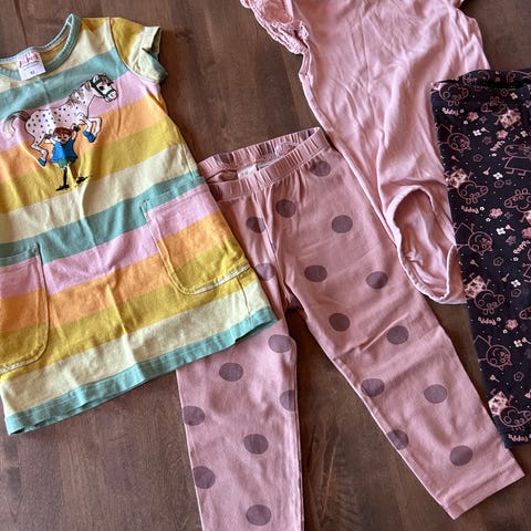 Et tutu-skjørt, en bukse som kan strammes med knapper og strikkbånd i livet og en shorts