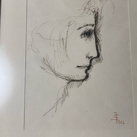 Henry Bonnevie (Røyken,1878-Bergen,1951),"Portrett av en pike, 1921", tegning