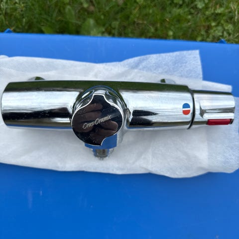 Selger et pent brukt blandebatteri fra IKEA. Har stått på en hytte og kun blitt brukt sporadisk, og kun til kaldt vann. Siden den varme siden aldri har blitt brukt, kjennes den litt "luggete" men det går nok enten over ved bruk, eller så går det helt sikkert an å smøre eller noe på innsiden for den som har tid til sånt :) Uansett fungerer den fint!