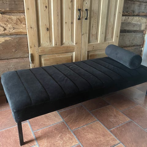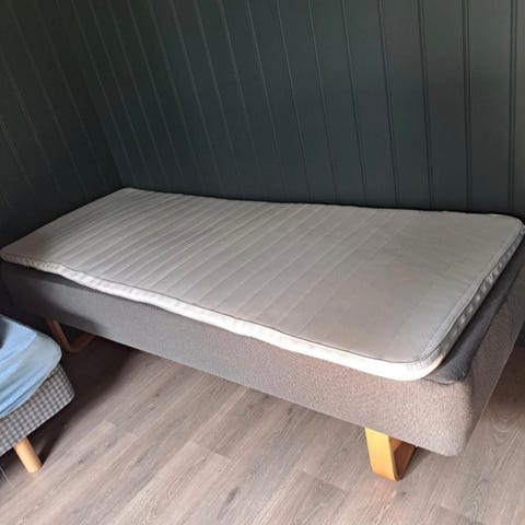 Daybed fra danske Broste Copenhagen. Skikkelig tung og solid både understell og madrass. 4 store hjul der 2 er låsbare. Har stått oppbevart på/i garasje. Må hentes.