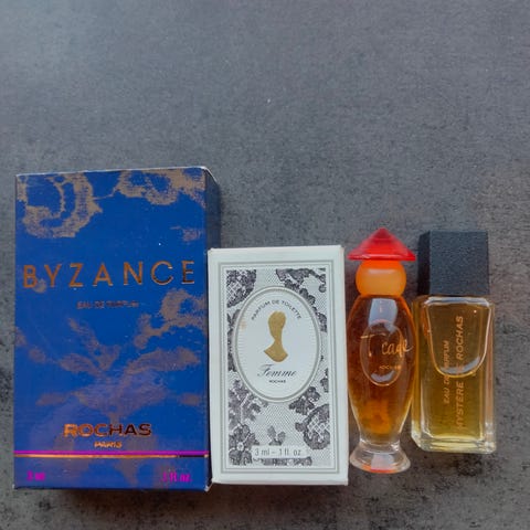 Tre nydelige fasettslipte parfymeflakonger .