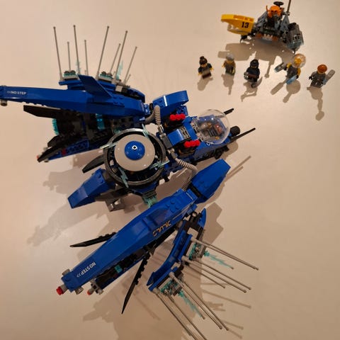 LEGO Ninjago Movie Set 70632 Quake Mech. Inkluderer en detaljert mekanisk robot med bevegelige deler. Settet inneholder også en minifigur og noen ekstra deler. Passer for LEGO-entusiaster og samlere. Mangler en finger(se bilder).