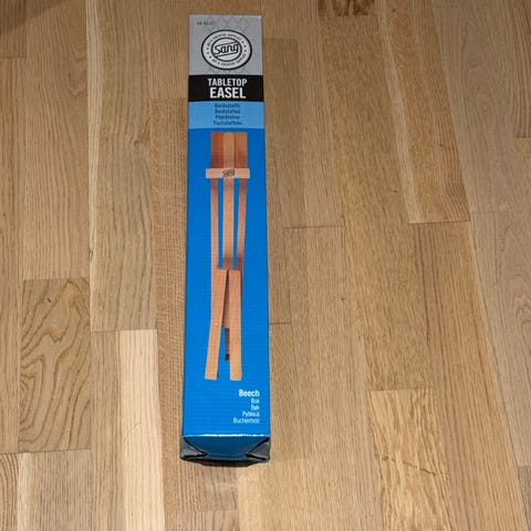 Har 12 stk enkle staffeli som leies ut etter avtale. Helt nye. Ca str 40 x 23 cm. Passer fint til lerret i A4 størrelse.
